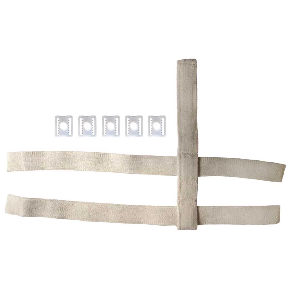 5-point system made of thick, cotton webbing and includes five 1″ goalie clips.
